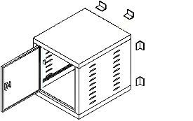 Pin style hinge allows field change door swing to left or right. Grounding with copper buss bar. Louvered sides. 2 knockouts per side (8 total). Locking lift & turn latch on solid front door. Removable solid back panel with mounting holes or can attach to wall with provided mounting angles. All welded steel construction. Includes one pair of fully adjustable mounting rails tapped to #10-32 standard. 100 lb. capacity. |